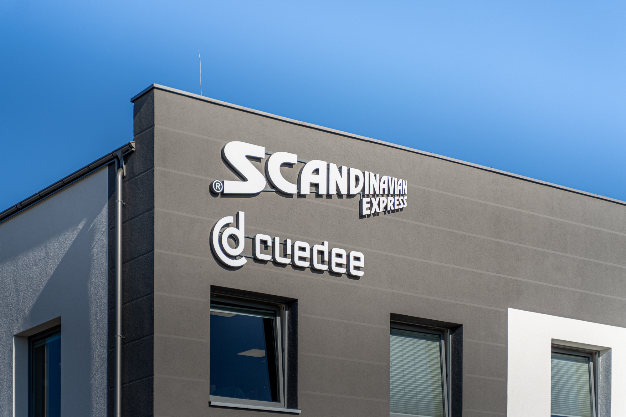 Zrealizowaliśmy kompleksowy projekt oznakowania zewnętrznego dla nowoczesnego budynku biurowego. Naszym zadaniem było stworzenie czytelnej i prestiżowej identyfikacji wizualnej dla dwóch niezależnych firm. Wykonaliśmy dwa podświetlane loga, stawiając na klasyczne i niezawodne litery przestrzenne. Zastosowaliśmy technologię, w której logo jest świecące w przód. Dzięki temu znaki firmowe emitują jasne, równomierne światło, gwarantując doskonałą widoczność i rozpoznawalność marek zarówno w pochmurne dni, jak i po zmroku.